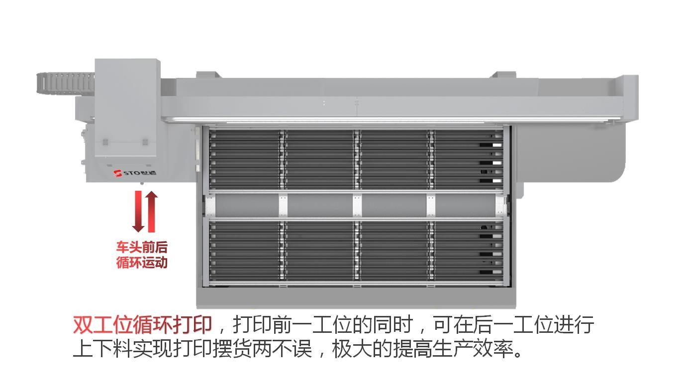 雙工位循環打印,打印前一工位的同時,可在后一工位進行